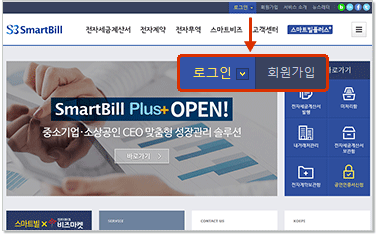 스마트빌 메인 페이지의 회원가입 버튼을 클릭합니다. |